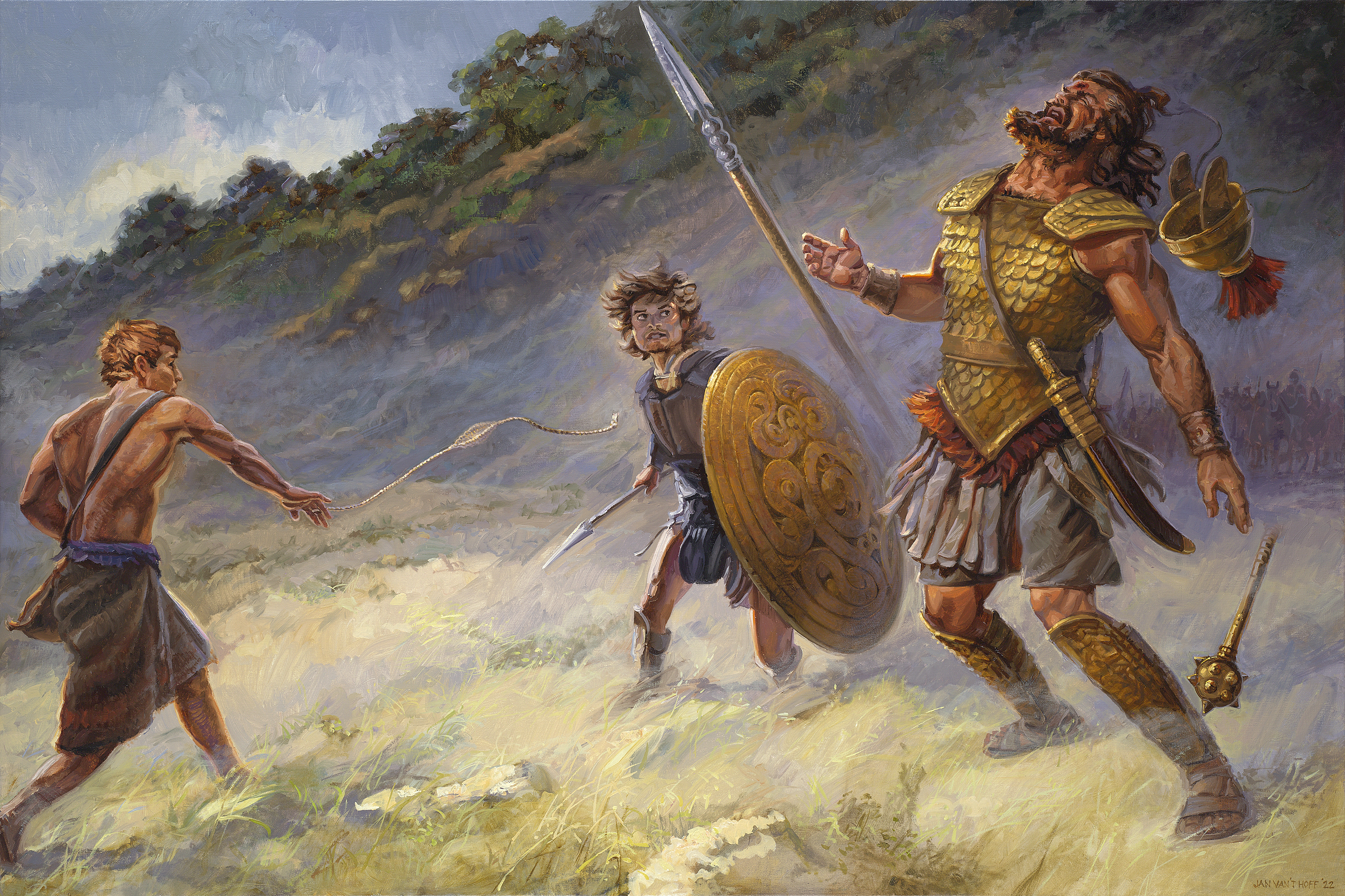 He meets Goliath "in the name of the LORD of hosts," and kills Goliath.